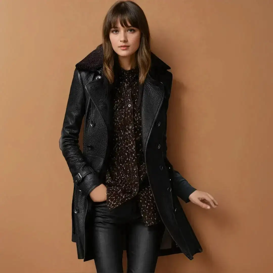 Elevate your outerwear collection with the Luna Leather Trench Coat. Designed to exude confidence and sophistication, this statement piece seamlessly merges classic trench-coat style with a luxurious leather finish—making it a must-have for crisp Canadian days or chic city nights.