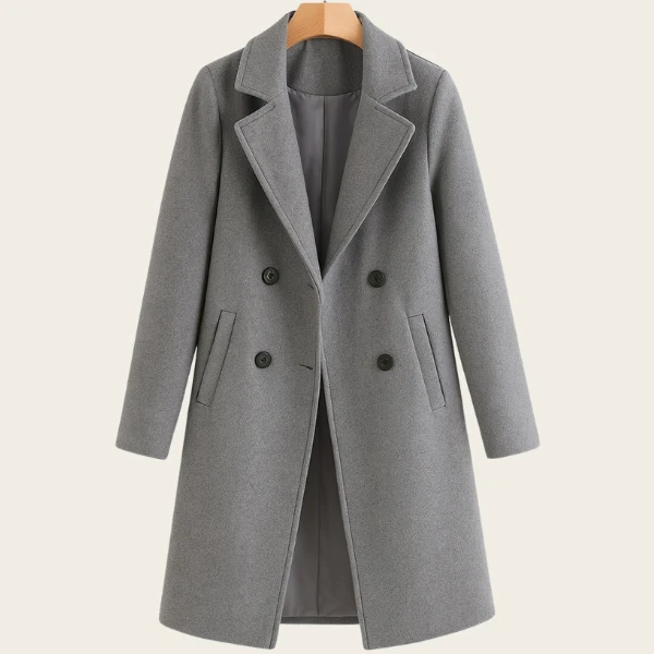 Crafted with precision tailoring, the coat features classic lapels for a polished touch and a structured button closure that keeps your look effortlessly refined. The smooth, elegant cut enhances your natural shape while allowing easy movement and comfort throughout the day.